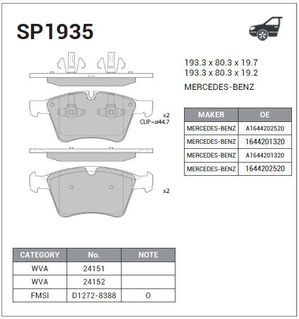 | Наименование | Колодки передние MERCEDES G X164, M W164 SP1935 |