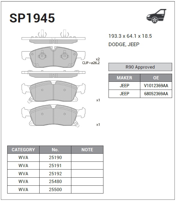 | Наименование | Колодки тормозные дисковые Jeep Grand Cherokee IV WK/WK2 10, Dodge Durango 11 SP |