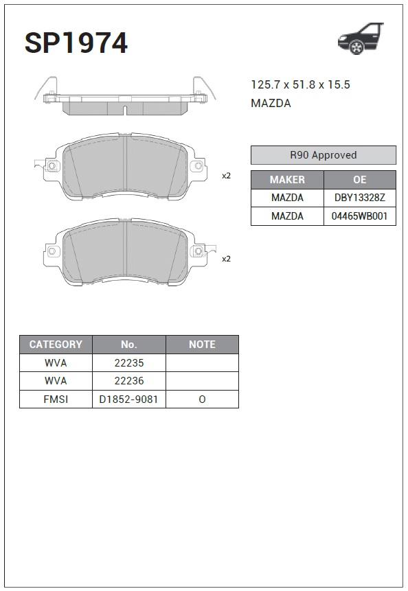 SP1974 SANGSIN Колодки тормозные MAZDA 2 передние (4шт.) SANGSIN