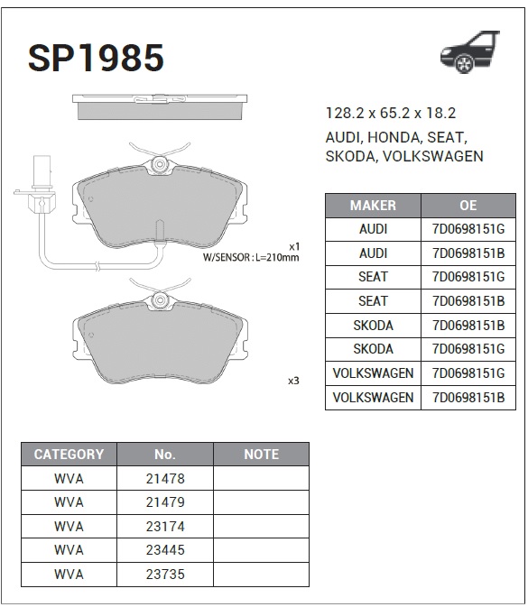 | Наименование | Колодки тормозные дисковые VW T4 2.5/2.4D &Syncro 98-04 диск 15 SP1985 |