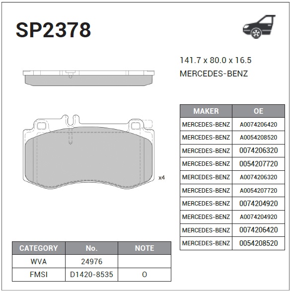 SP2378 SANGSIN Колодки тормозные передние MB W212/S212 E500 5.5 09 SP2378