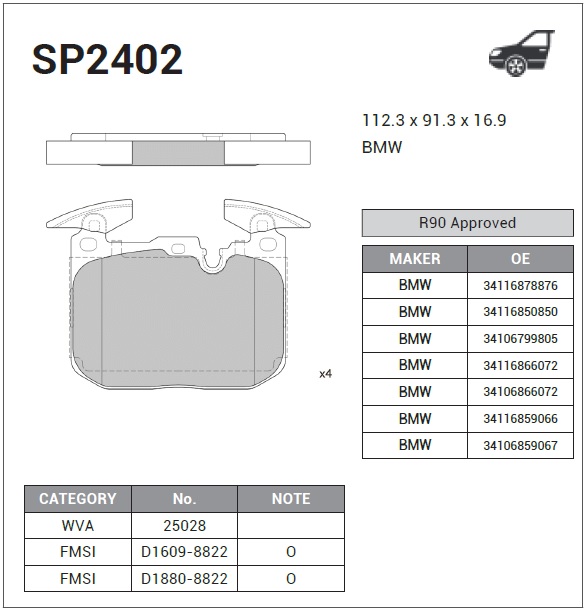 | Наименование | Колодки тормозные дисковые BMW F20/F30 1.4-3.0/2.0d 11 SP2402 |