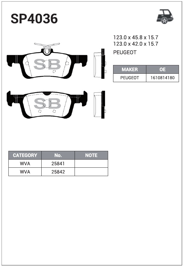 | Наименование | Колодки задние PEUGEOT 308 II SP4036 |