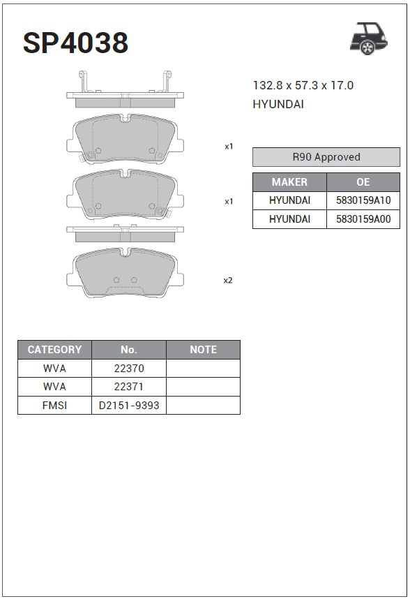 SP4038 SANGSIN Колодки тормозные HYUNDAI HD35 (14-),H350 (14-) задние (4шт.) SANGSIN