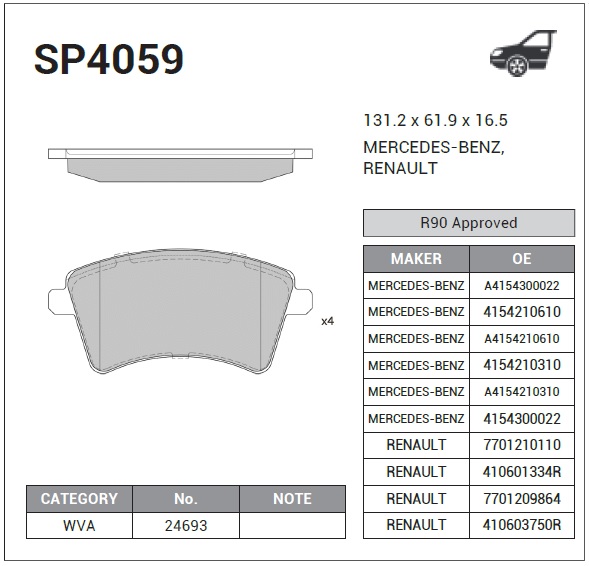 | Наименование | Колодки передние RENAULT KANGOO 08- SP4059 |