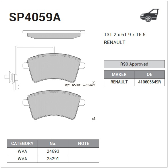 | Наименование | Колодки тормозные дисковые Renault Kangoo 1.6/1.5dCi 08 SP4059A |