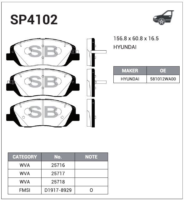 SP4102 SANGSIN Колодки тормозные HYUNDAI Santa Fe (12-) KIA Sorento (12-) передние (4шт.) SANGS