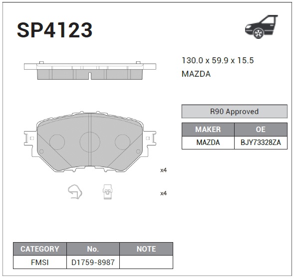 SP4123 SANGSIN Колодки тормозные MAZDA 3 (13-) передние (4шт.) SANGSIN