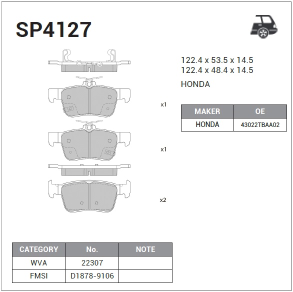 | Наименование | Колодки тормозные дисковые Honda Civic 16 SP4127 |