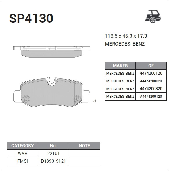 | Наименование | Колодки задние MERCEDES VITO (W447) SP4130 |