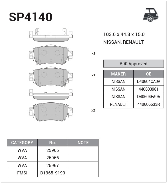 SP4140 SANGSIN Колодки тормозные NISSAN Qashqai (13-) задние (4шт.) SANGSIN