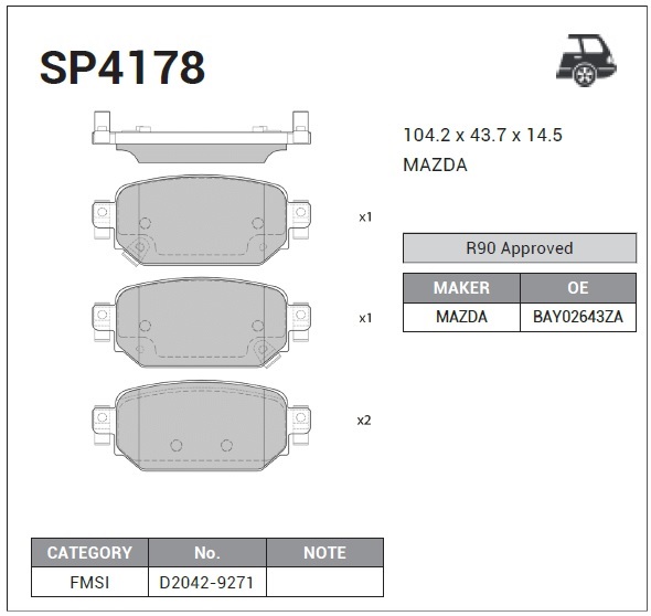 | Наименование | Колодки задние MAZDA 3 (BM) 2013- SP4178 |