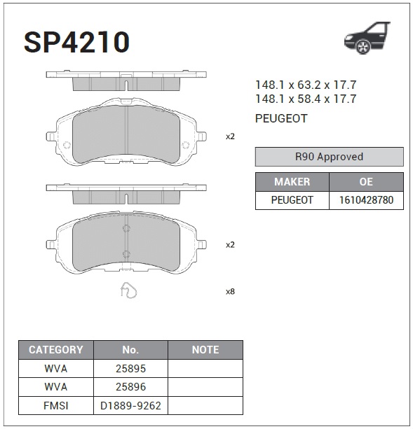 | Наименование | Колодки передние PEUGEOT 308 II SP4210 |
