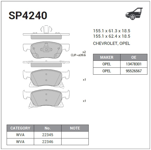 | Наименование | Колодки передние CHEVROLET CRUZE 2015- SP4240 |