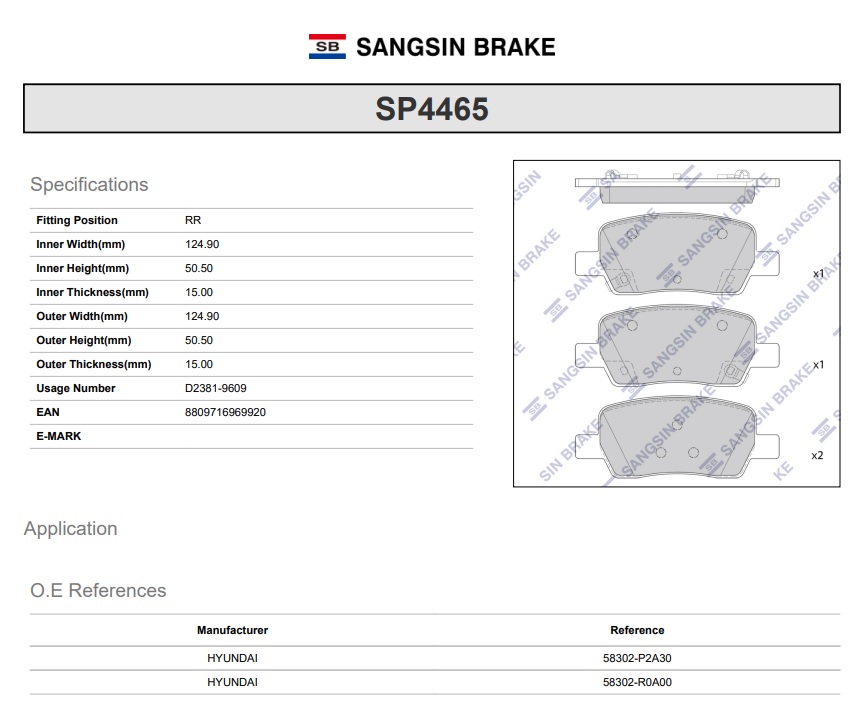 SP4465 SANGSIN Колодки задние KIA SORENTO (MQ4) 2020- SP4465