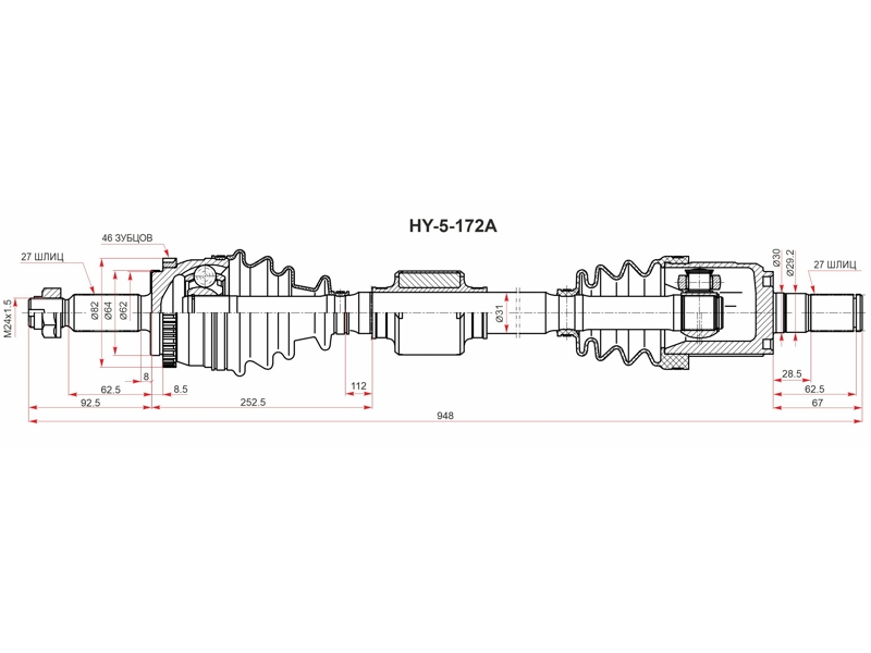 HY5172A SAT Привод в сборе АКПП HY5172A