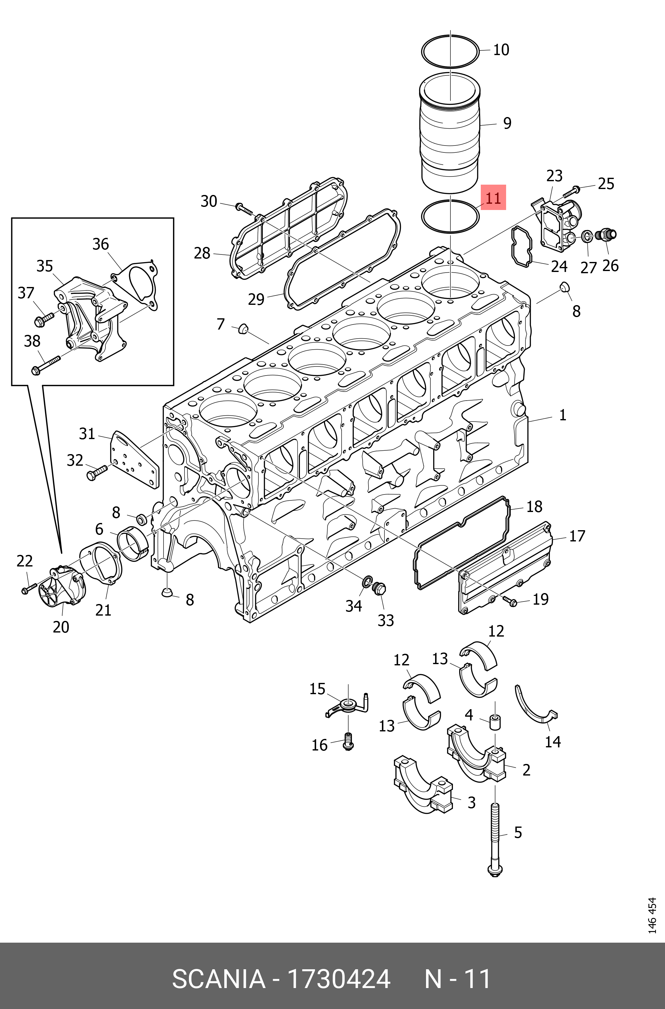 1730424 SCANIA Кольцо гильзы БЦ уплотнительное 148,5*4,0 DC9/11/12/13 Scania P/G/R/T серия