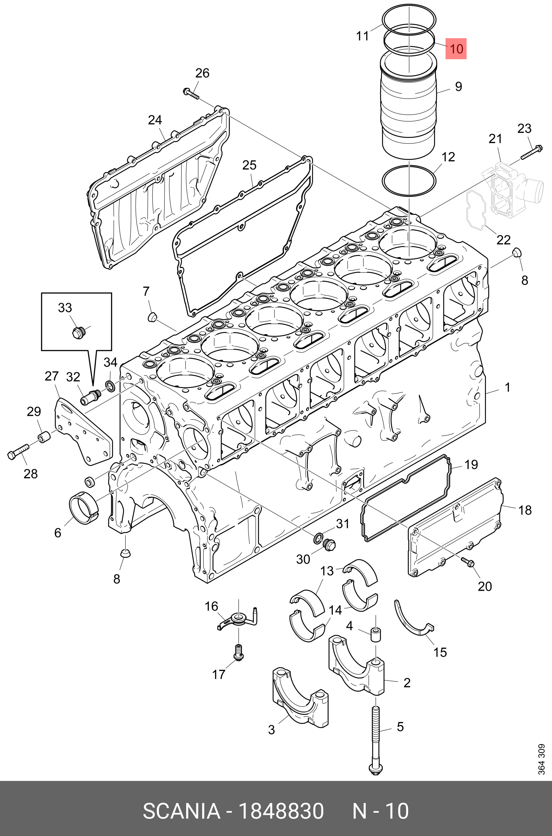 1848830 SCANIA кольцо маслосъемное !\SCANIA DC13