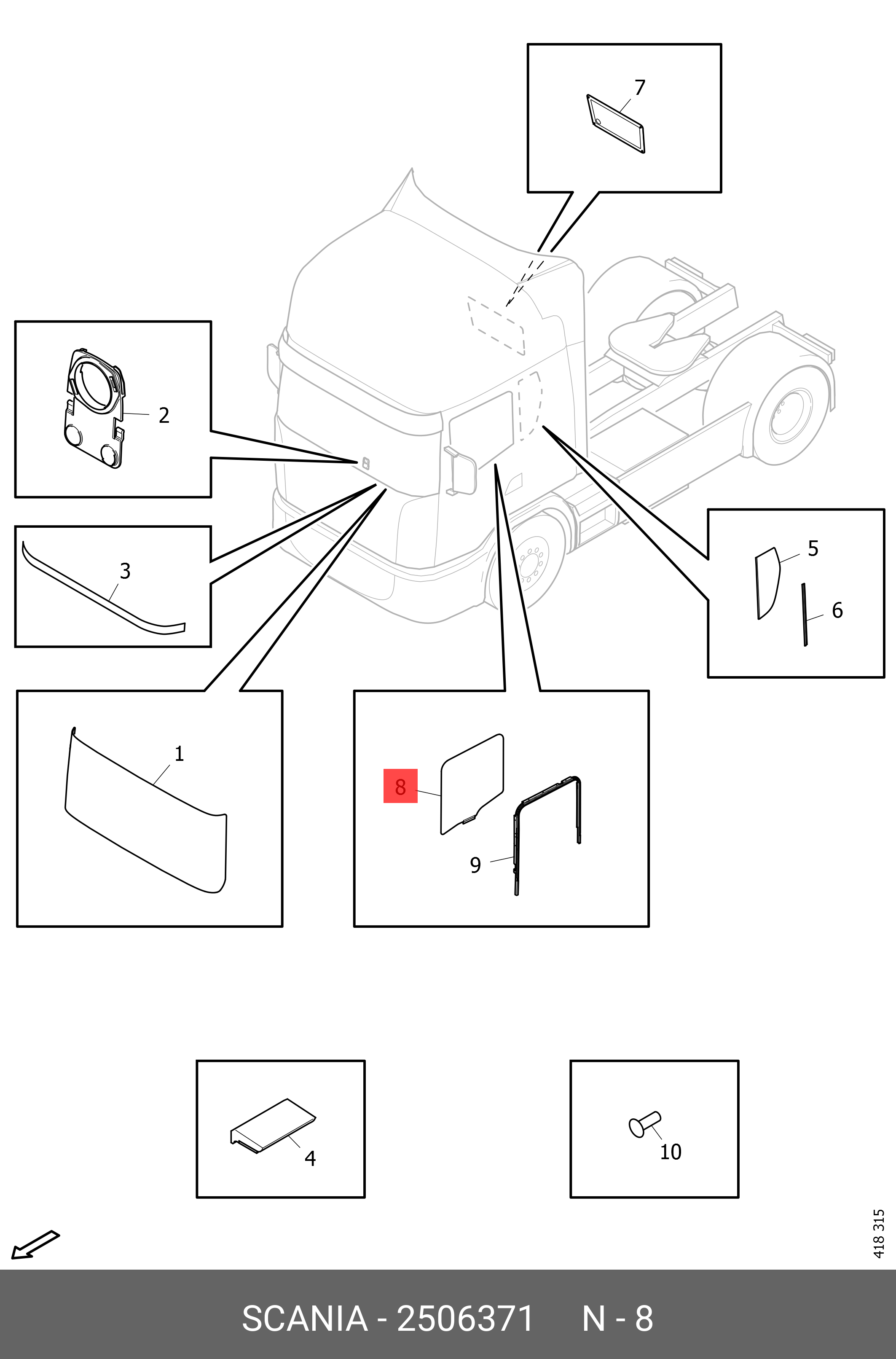 2506371 SCANIA Стекло левой двери 2018+ Scania