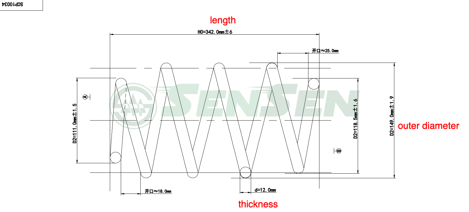 SCP10034 SENSEN Пружина NISSAN Note (E11) подвески передней SENSEN