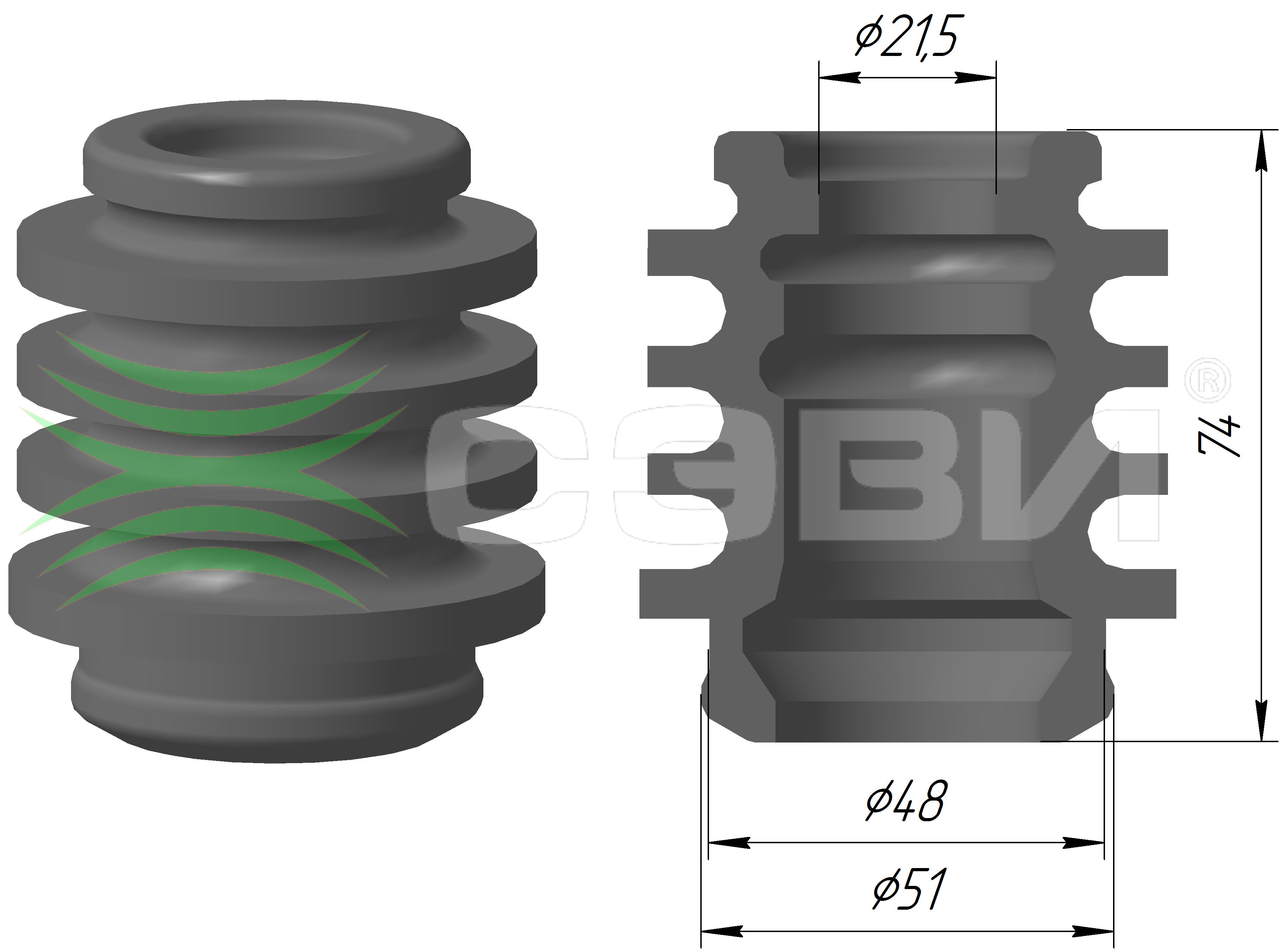 | Высота детали [мм] (H) | 74 |