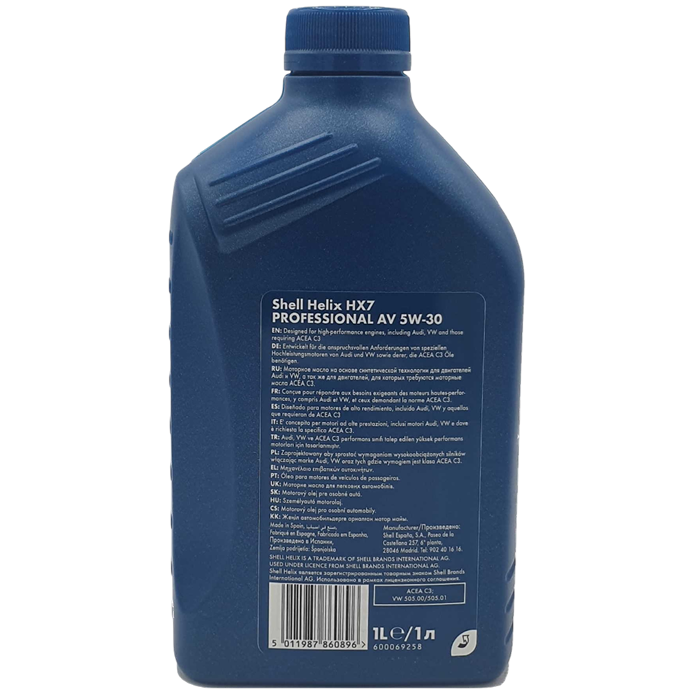 | Наименование | Масло моторное SHELL HELIX PROFESSIONAL HX-7 AV 5W30 п/синт.1л |