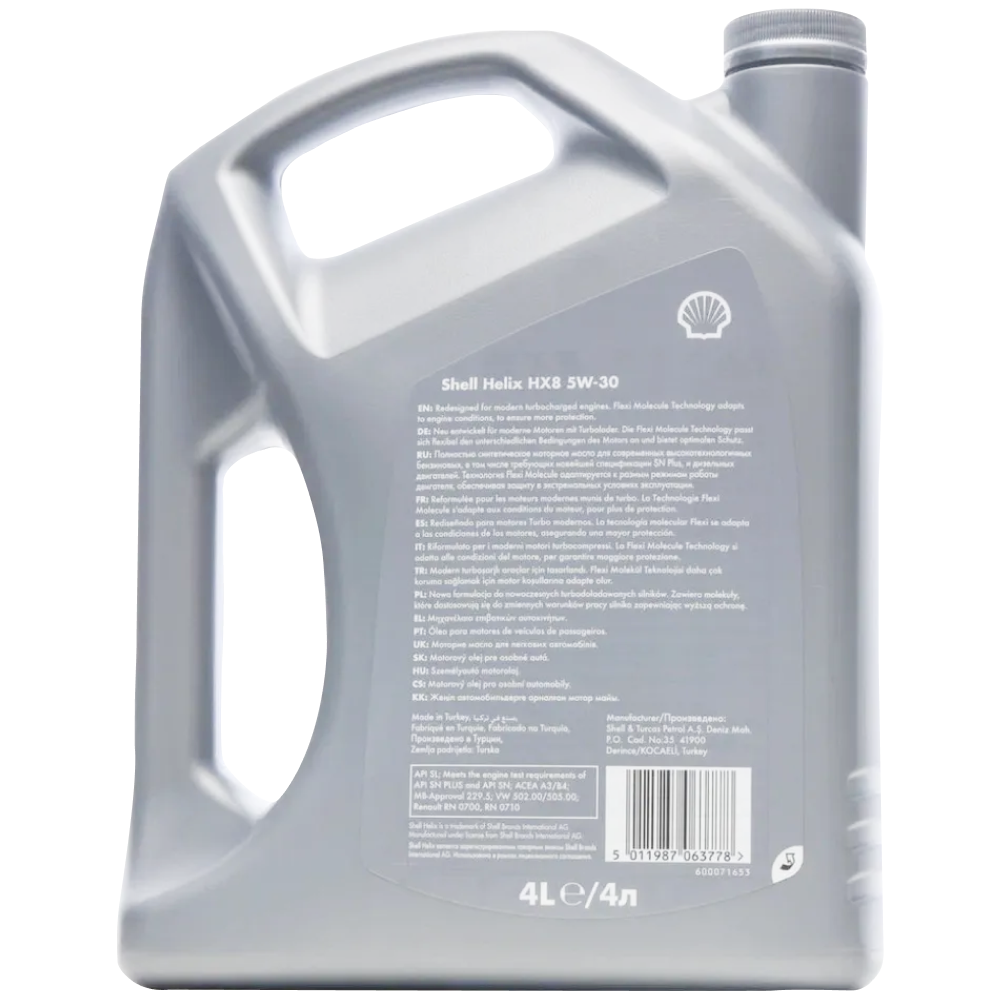 | Наименование | Масло моторное SHELL HELIX HX-8 5W30 A3/B4/SL/SN+ синт.4л |