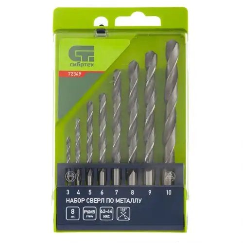 72349 SIBRTEC Набор сверл по металлу 3.0-10.0мм HSS (8шт.) СИБРТЕХ