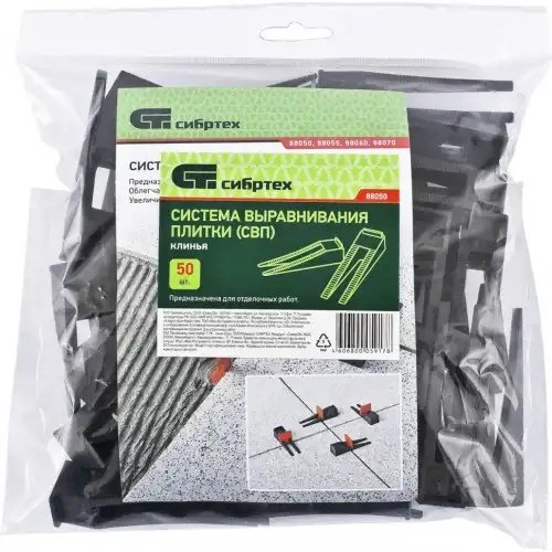 88050 SIBRTEC СИСТЕМА ВЫРАВНИВАНИЯ ПЛИТКИ (СВП), КЛИНЬЯ, 50 ШТ. В ПАКЕТЕ // СИБРТЕХ
