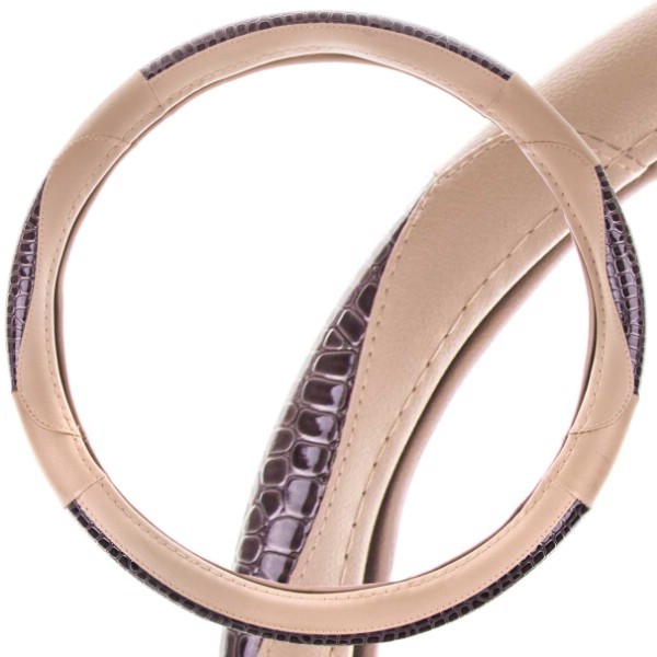 S01102380 SKYWAY Оплетка на руль SKYWAY (M) 37-39 см. бежевая, кожаная с перфорированными встав S