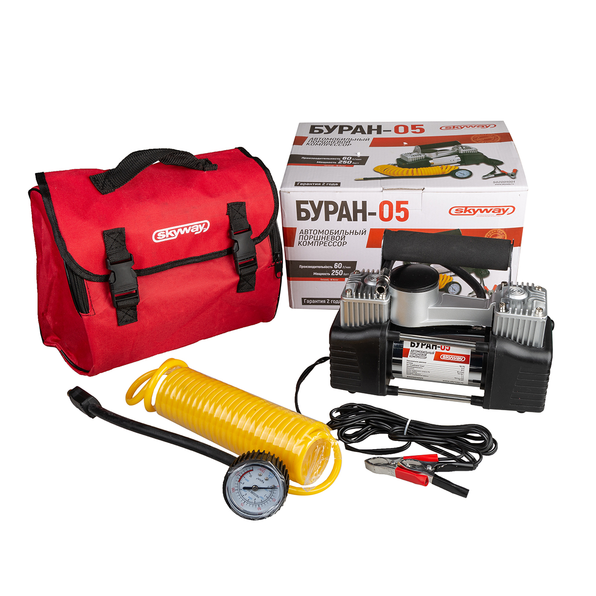 S02001001 SKYWAY Компрессор автомобильный 60л/мин. 12атм. 10А 12V на клеммы АКБ Буран-05 SKYWAY