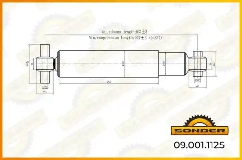 090011125 SONDER Амортизатор для ам Volvo VN (96-)VNL (06-)VT (06-) (387626 16x100 14x66 OO) задн