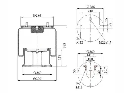 090030120 SONDER Пневморессора Premium со стаканом (металл) 1 шпилька + 2 отверстия MB/Shmitz — 3