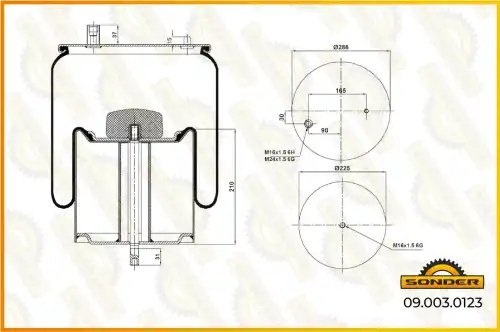 090030123 SONDER Пневморессора Premium со стаканом (металл)1шп. + 1шп.-шт. RVI Premium/Magnum, Vo