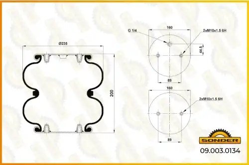 090030134 SONDER Пневморессора Premium c металл. крышк. двойной сильфон ROR — 3 года безусловной
