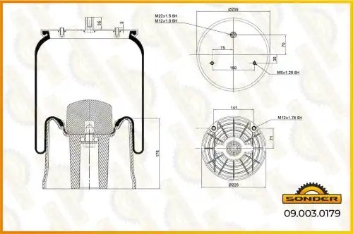 090030179 SONDER Пневморессора Premium со стаканом (пластик) 2шп.M8смещ.30, 1отв.штуц.M12x1.5M22x