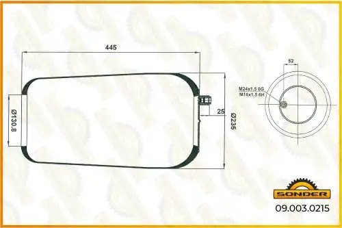 090030215 SONDER Пневморессора Premium без стакана 1шп.-штуц.-M16/24 (стакан 1 отв.xМ16) о.н. 942