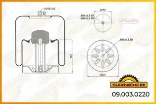 090030220 SONDER Пневморессора Premium со стаканом (металл) 1 шп. штуц. MB Actros Voss 232 — 3 го