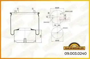 090030240 SONDER Пневморессора Premium со стаканом (металл) 3 шп. M10/1 отв. M16,*1,5/стак. 1 отв