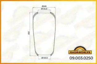 090030250 SONDER Пневморессора Premium без стакана и крышки (чулок) 916N MAN Bus — 3 года безусло