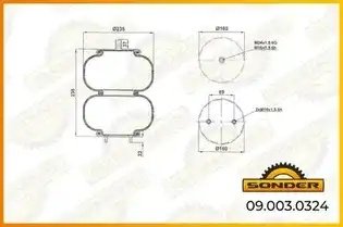 090030324 SONDER Пневморессора Premium c металл. крышк. двойной сильфон o225x194 — 3 года безусл