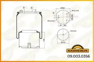 090030356 SONDER Пневморессора Premium со стаканом (металл) 3 шп.+возд. / 1 отв.); стакан O185 88