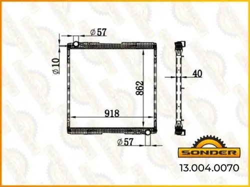 130040070 SONDER Радиатор Scania 1776026, 10570349 (без рамки), Nissens 672920