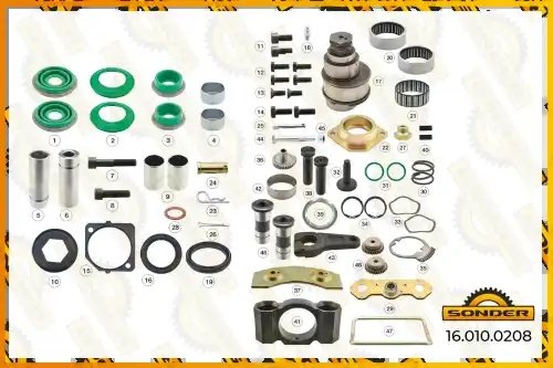 160100208 SONDER Аналог 16480. РМК суппорта MERITOR DX 195 Полный комплект, правый, 59 деталей