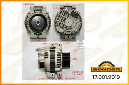 170019019 SONDER Генератор Premium 24V 100A Scania со шкивом о.н SCANIA 2398368 / MAHLE - MG 935