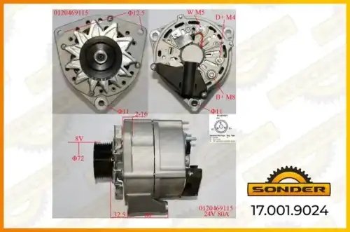 170019024 SONDER Генератор Premium 24V, 80A со шкивом о.н DAF 1357593A / MAHLE - MG 586 — 2 года