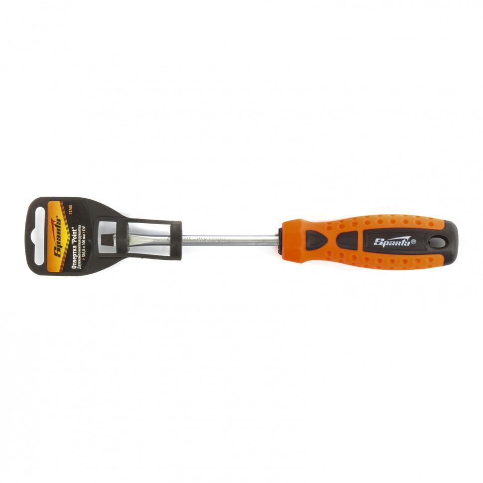 11768 SPARTA Отвертка Point, SL 6х100 мм, CrV, двухкомпонентная рукоятка Sparta
