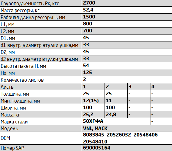 | Наименование | рессора 2 лист перед.! L=1675\ Volvo |