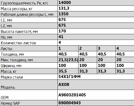 | Наименование | рессора задняя! 4-х листовая L=1350mm\ MB Actros 3331-3360 |