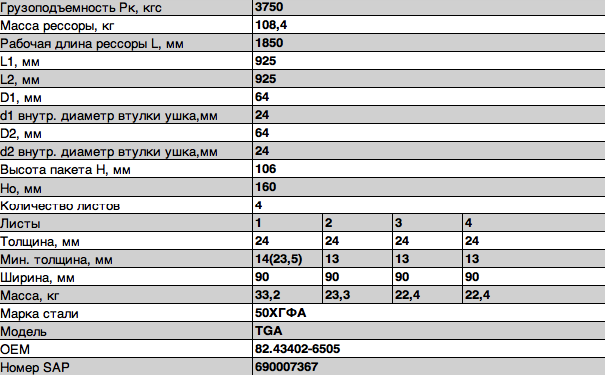 | Наименование | рессора 4-листовая! передняя L=925\ MAN |